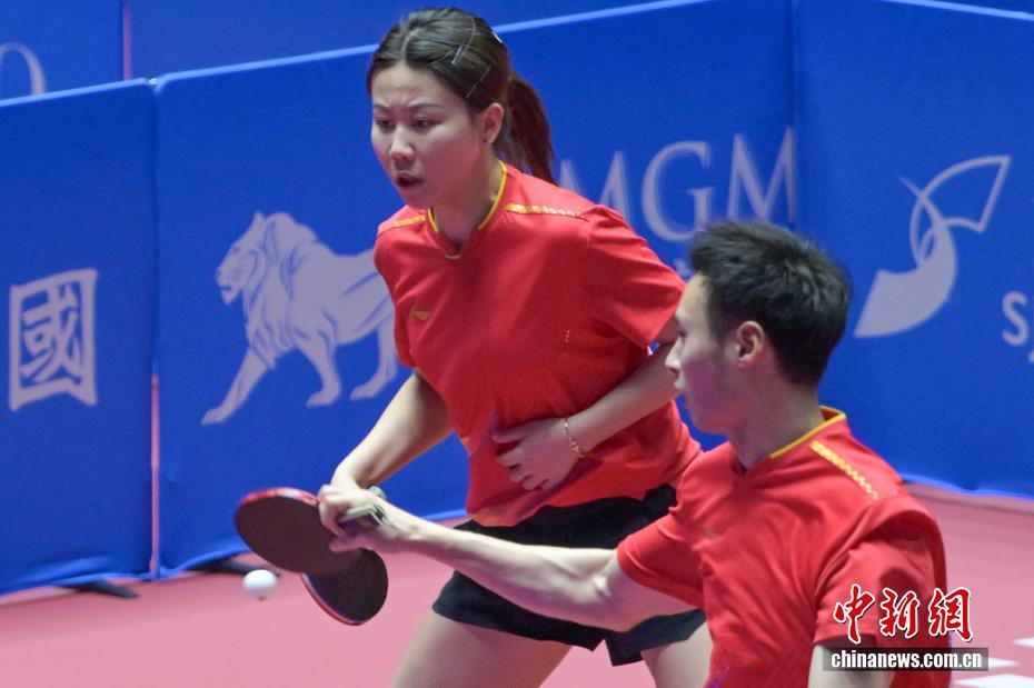 圖為澳門隊選手石慧莉(右)、鄭孔崴在混合雙打比賽中。中新網記者 陳永諾 攝