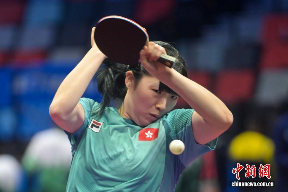 圖為香港隊選手蘇籽童在混合雙打比賽中擊球。中新網記者 陳永諾 攝