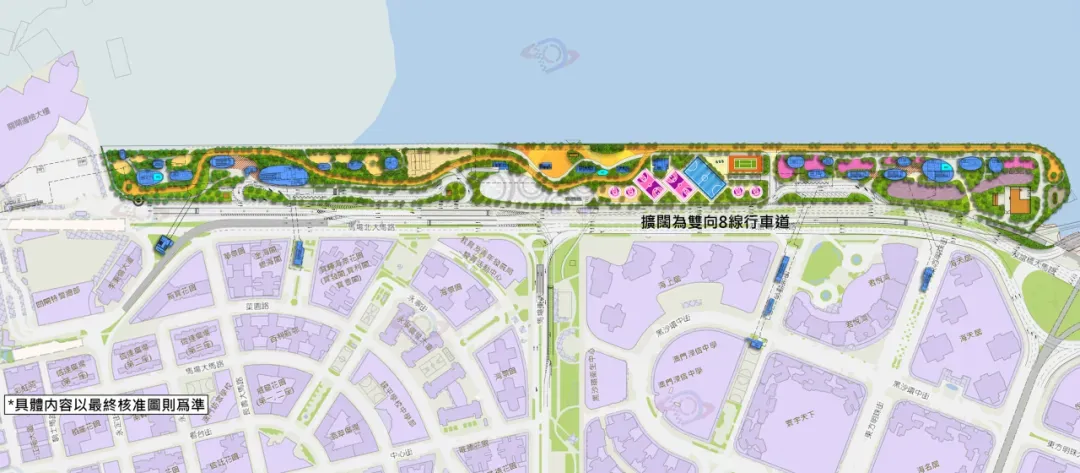 為更好地聆聽社會意見,以對設計方案作出優化完善,公共建設局早前舉辦了多場專題講解會,分別向市政諮詢委員會、社區服務諮詢委員會、交通諮詢委員會、城市規劃委員會以及該區坊會代表介紹方案並收集意見。 會上大多數意見均贊同區內應建設多元的海濱休憩空間、解決沿岸污染,以及擴闊道路的設計方案,希望施工前應與相關部門做好協調工作及廣泛宣傳,制訂臨時交通方案減低對周邊的影響。 預計2026年完成設計後分階段啟動工程招標,目標與輕軌東線於2029年通車後同步投入使用。