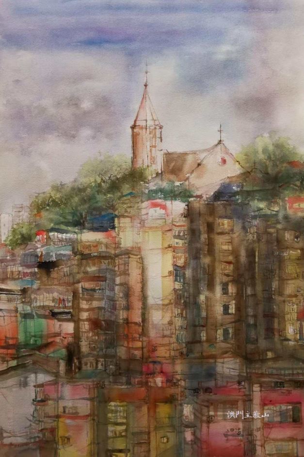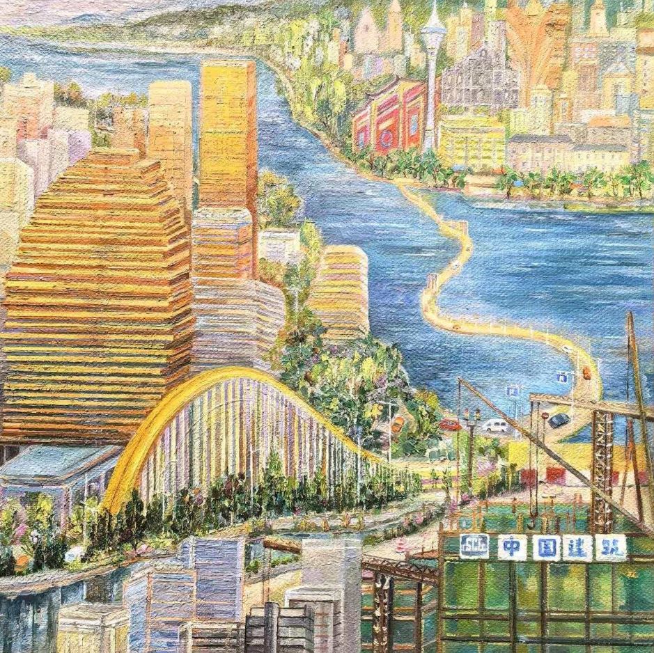 Lily 的畫筆,從不滿足於復刻地標,而是以「新澳門人」的獨特視角,敏銳地挖掘著小城裡那些被忽略的細節。水彩的通透、油畫的沉厚與丙烯的銳度,共同調和出她獨特的藝術語言 —— 這既是雙重文化身份在她生命畫布上的交融,亦是她對澳門這座城市的深情凝視。在此凝神駐足,於方寸之間,見天地,見歷史…… 在此,見彼!