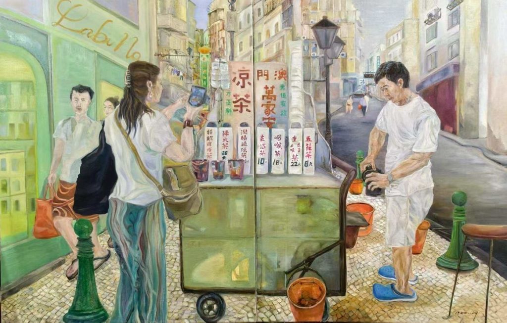 藝術家Lily在隨後的發言中分享了她的創作心路,她動情地說道:「澳門的大街小巷於我而言,既是日常生活的『此地』,也是精神探索的『彼岸』。我試圖用畫筆記錄下涼茶鋪裡升騰的人間煙火,街角光影中沉澱的歲月故事,以及與這座城市歷史先賢的隔空對話。這不僅僅是一次藝術展示,更是我作為新澳門人,向這片土地遞交的一份深情告白。