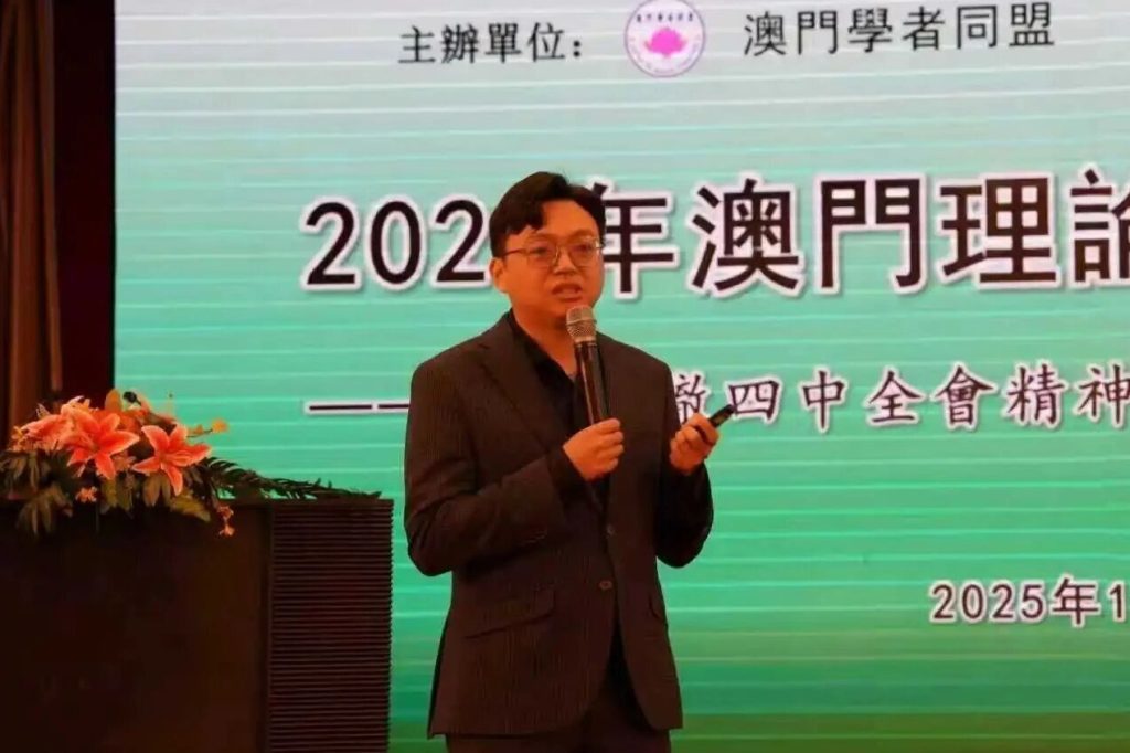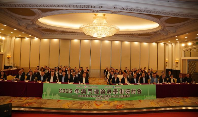 【環球新聞報訊】一年一度的“澳門理論界學術研討會”是澳門學者同盟彙聚智慧、服務澳門的一項品牌活動。“2025澳門理論界學術研討——學習貫徹四中全會精神,為特區三五規劃建言”15日上午在萬豪軒舉行。研討會由澳門基金會贊助,共有85位同盟會員參加,其中16位同盟會員做發言報告。研討會由澳門學者同盟常務副會長冷鐵勳主持,中央人民政府駐澳門特別行政區聯絡辦公室研究室管延斌主任、黃智虎副主任,澳門特別行政區政府政策研究和區域發展局張作文局長、黎宇明廳長出席了研討會。