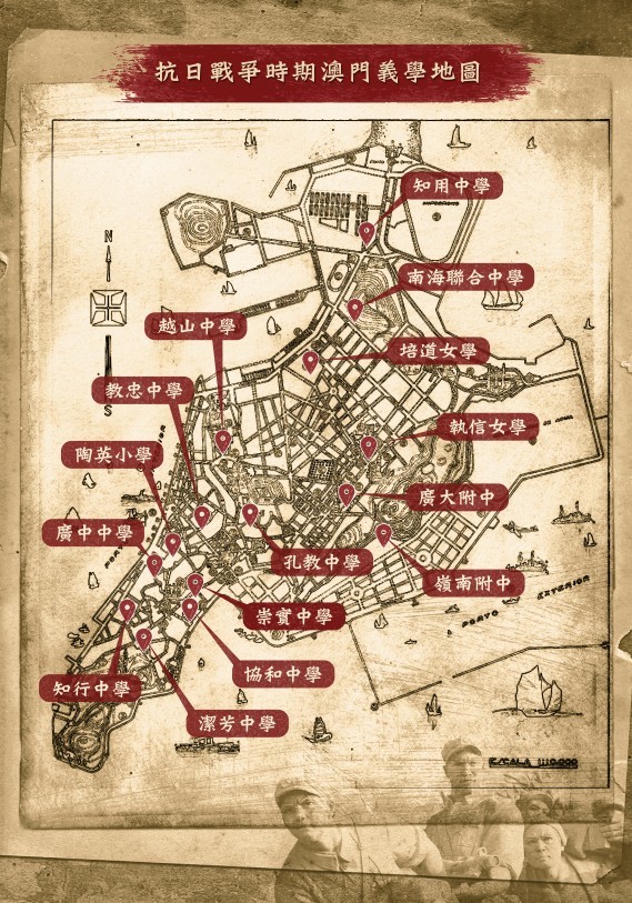 我們還搜集了相關資料首次繪製承載著希望的「抗戰期間澳門義學地圖」,這些微薄的努力都是為了傳遞一個信念:雖然抗戰期間,澳門身處所謂特殊的「中立」地位,但澳門人從未缺席國家大義。只有不忘來時路,方能照亮未來行。
