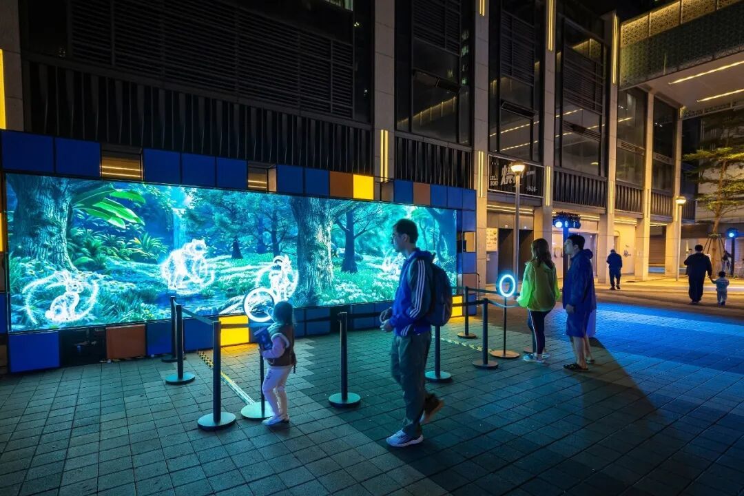 同場另一互動裝置《光影自然》,由澳門青年藝術家黃子灃操刀,結合澳門藝術家所創作的投影叢林動畫,通過手影互動的方式,感受大自然中生靈的氣息,呈現社區飽滿活力。