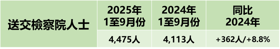 今年首三季警方調查犯罪及警務行動期間,共有4,475人被拘留及送交檢察院處理,比2024年同期增加362人,上升百分之8.8。