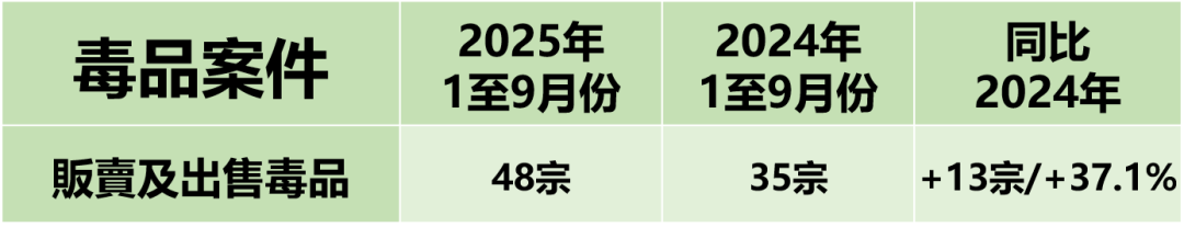 毒品罪案方面,今年首三季“販賣及出售毒品”案件共錄得48宗,比去年同期增加13宗。法律完善方面,今年6月24日,第2/2025號法律生效,將包括依託咪酯在內的24種國際列管及非列管物質納入管制。