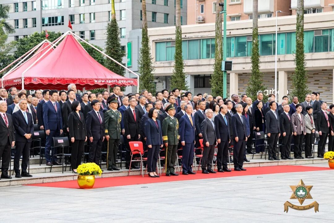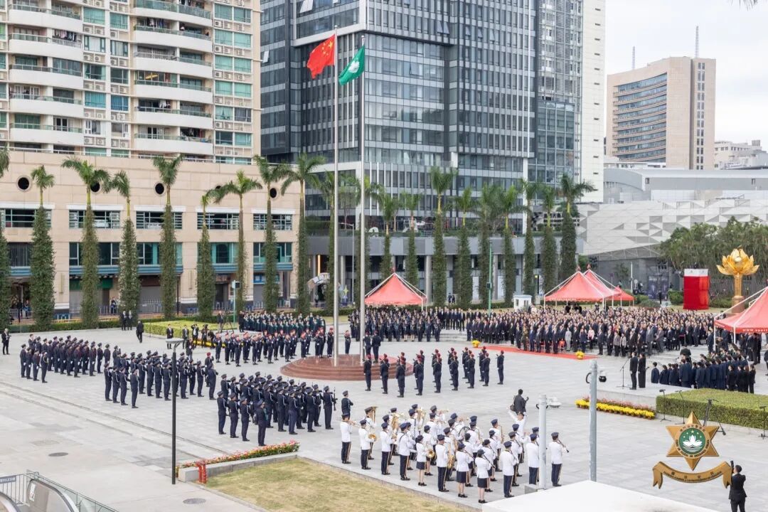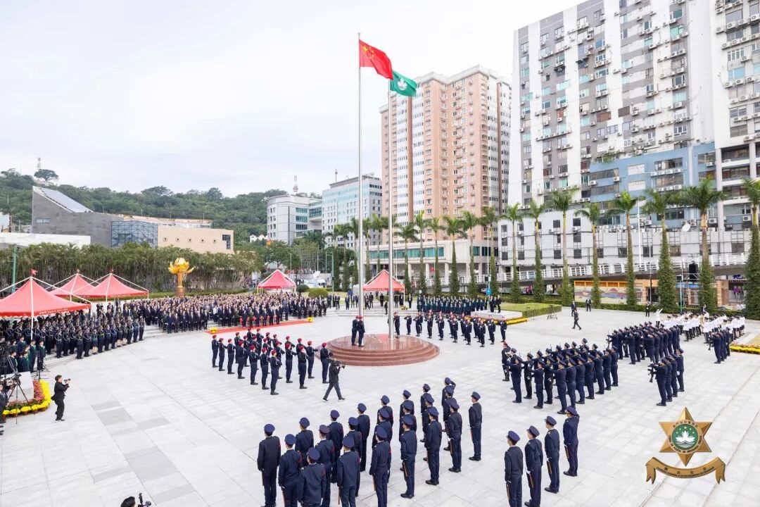 澳門特區政府於今日上午8時在金蓮花廣場舉行莊嚴的升國旗儀式,以慶祝澳門回歸祖國二十六週年,儀式由行政長官岑浩輝主持;中央駐澳官員、解放軍駐澳部隊軍官、特區立法和司法機關負責人、政府主要官員及各界人士一同出席。