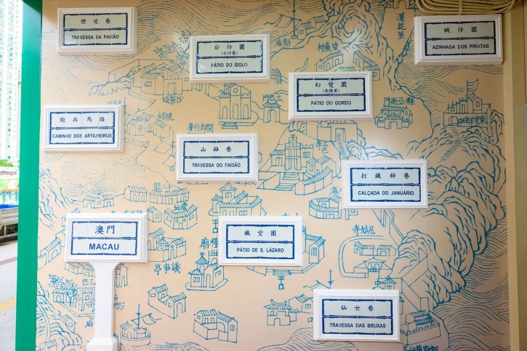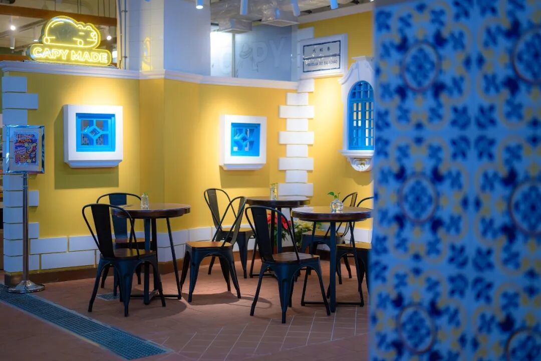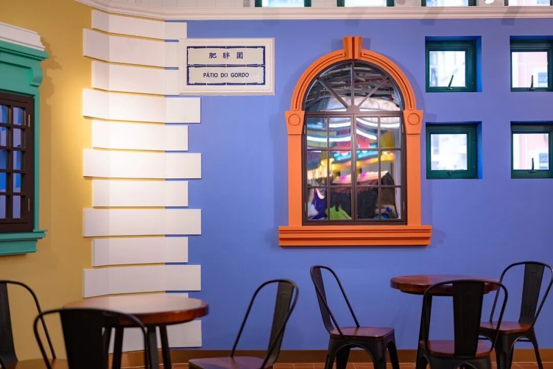 街市設計增添葡式元素,以街名區分室內多個用餐點,彩色牆身佈置了不同的葡式窗框。