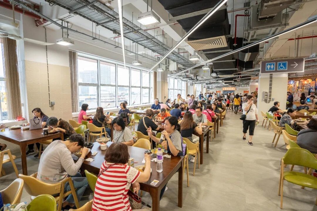 位於街市二樓的美食廣場於2024年4月開業,設有十多個熟食攤檔,供應中式小炒、蒸煮菜式,東南亞、日韓、西式美食甜品等,大家可以一邊品嚐美食,一邊觀賞內港海景。