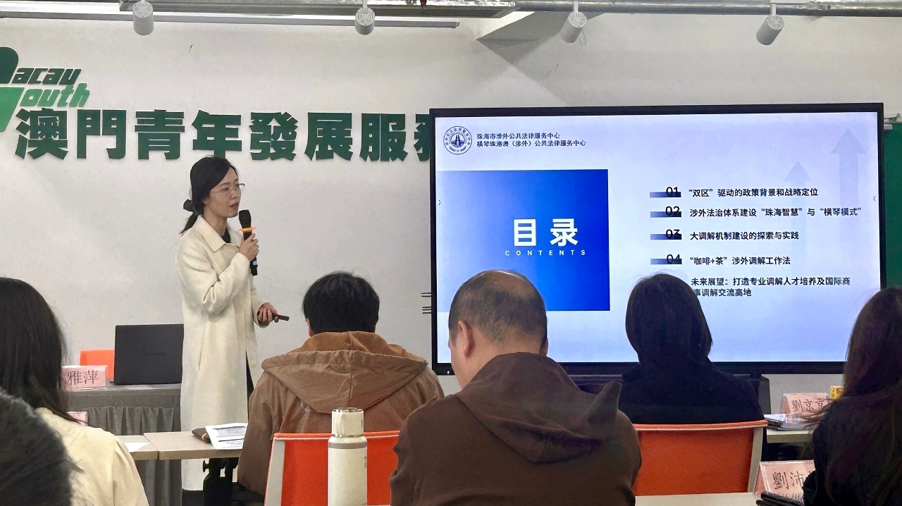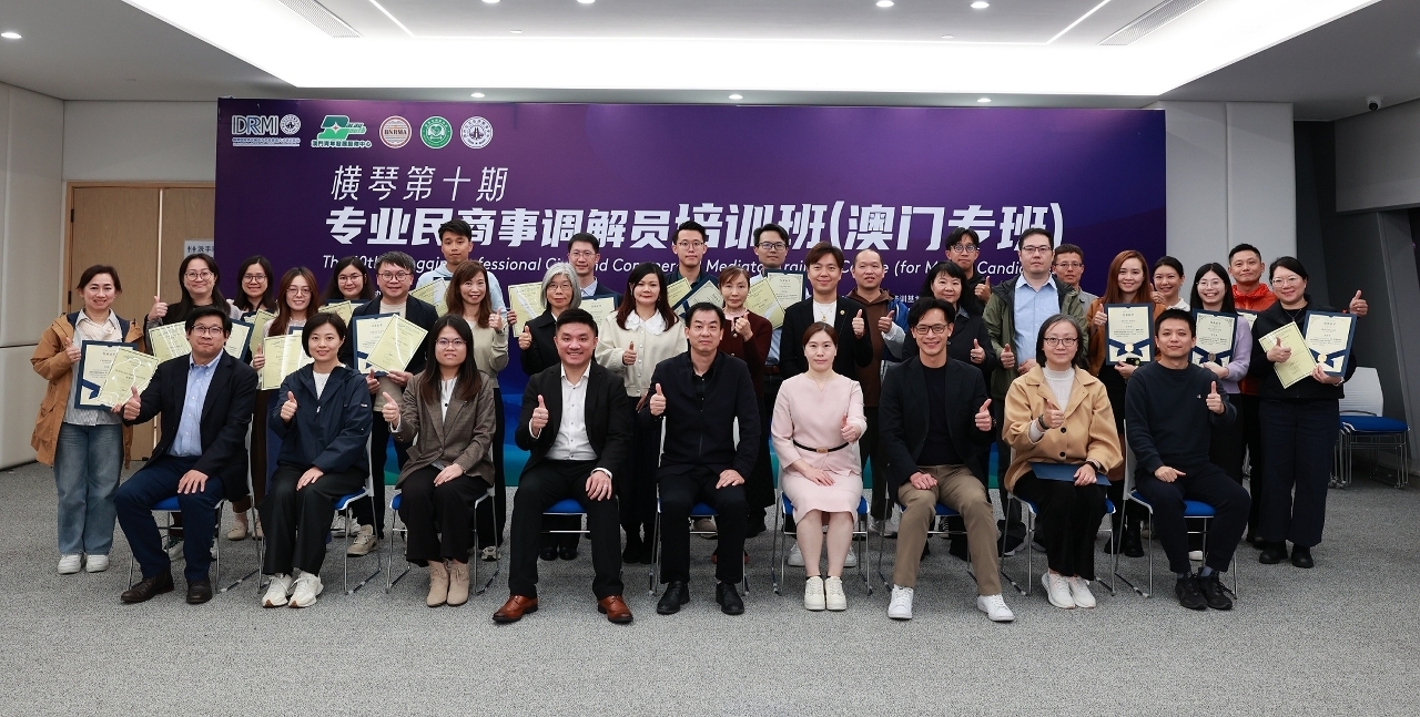 課程由珠海市涉外公共法律服務中心、橫琴珠港澳(涉外)公共法律服務中心,以及澳門青年發展服務中心合辦,由香港國際爭議解決及專業談判研究院認可的資深調解員團隊授課,是粵港澳大灣區專業認證項目。參與的教職員透過線上線下結合的方式在澳門及橫琴兩地完成共40小時課程,深入學習調解概念、策略、程序及溝通技巧,並進行模擬案例實踐。參與課程的教職員均獲得由香港國際爭議解決及專業談判研究院、澳門青年發展服務中心、珠海市調解協會、橫琴國際爭議解決與風險管理人才培訓基地及澳門一帶一路國際商事調解協會聯合頒發的專業民商事調解員培訓證書。