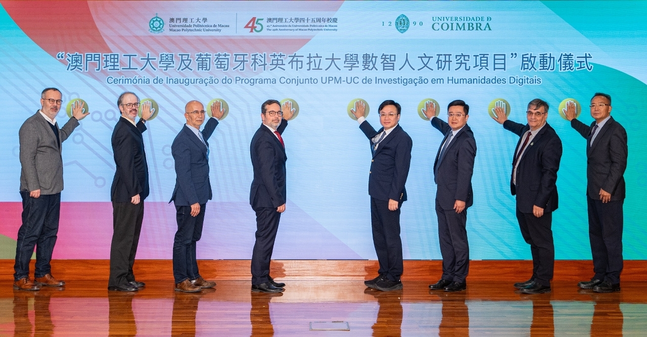 值澳門理工大學建校四十五週年之際,為進一步發揮澳門作為中葡學術交流橋樑的角色,深化跨學科國際科研協作,澳門理工大學與葡萄牙科英布拉大學正式啟動數智人文聯合科研項目。啟動儀式由澳理大校長嚴肇基及科英布拉大學副校長努諾·門多薩(Nuno Mendonça)等嘉賓共同主禮。此次合作標誌著兩校在堅實的戰略夥伴關係基礎上,進一步拓展高等教育協作的新領域,構建一個以澳門為關鍵紐帶、跨越地域限制、兼具開放共享與持續發展特性的多語言數智人文生態圈,為中國與葡語國家之間的學術及文化交流注入創新動力。