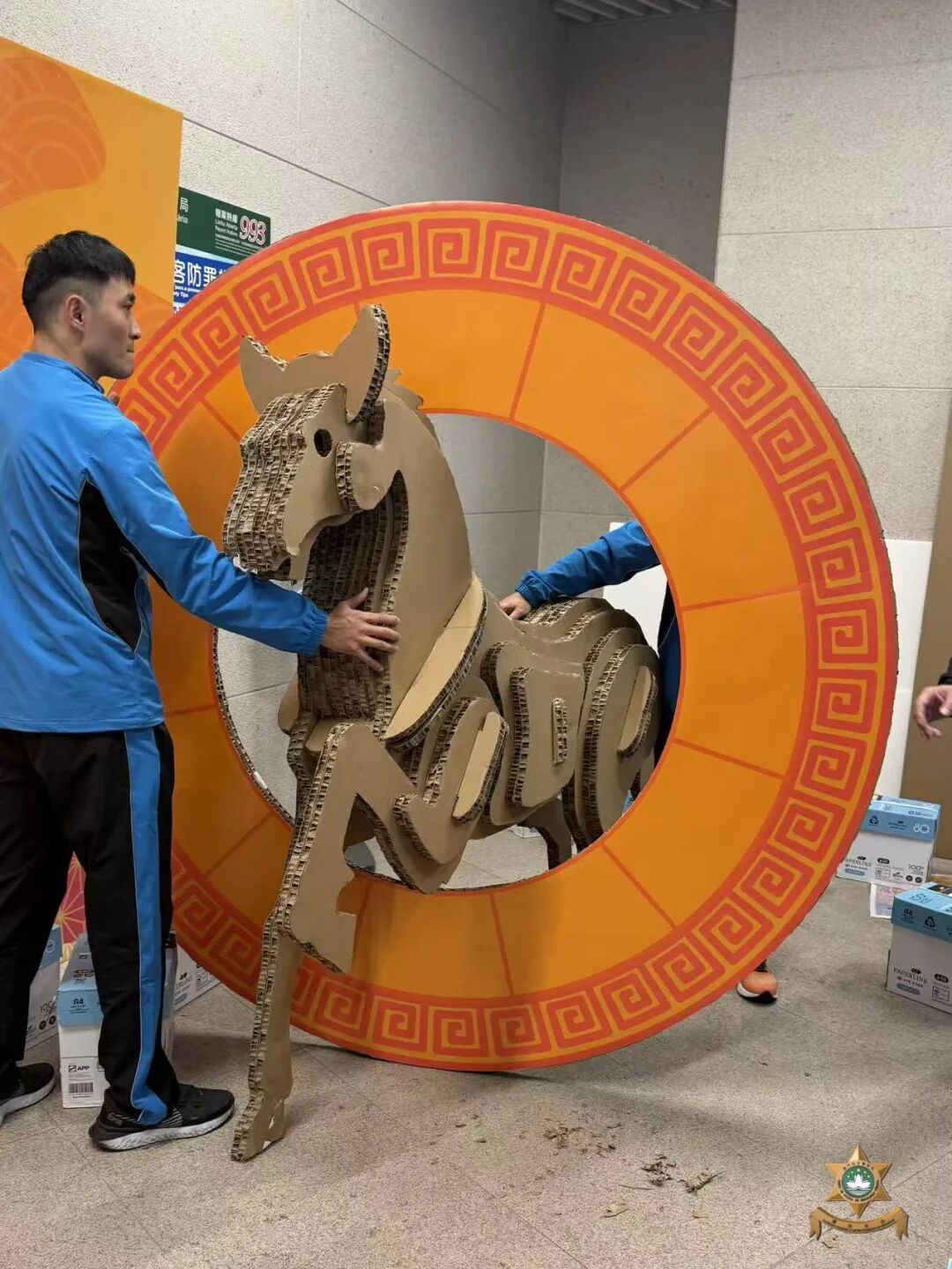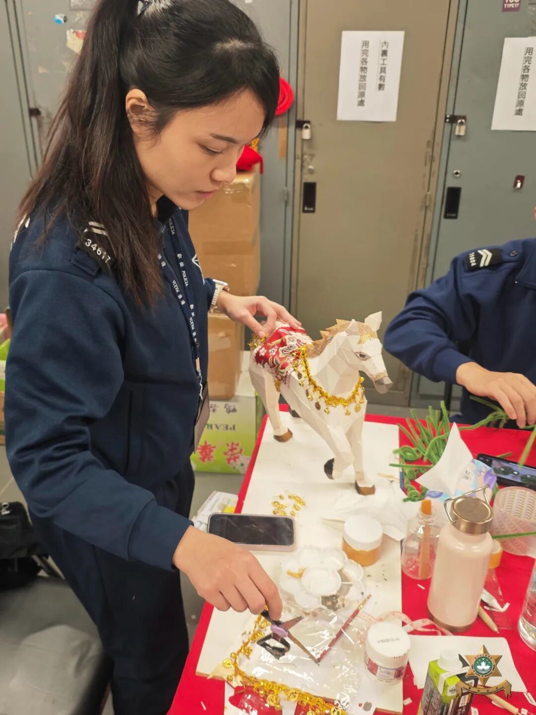 新春裝飾設計緊扣“馬躍新程,灣區共融”主題,融合2026丙午馬年生肖文化內涵與吉祥意藴。作品以駿馬飛躍、昂然奮進的矯健身姿為視覺意境,生動詮釋“邁開新步調,積極創明天”的發展理念;同時,設計理念將蓮花與警察形象相連,象徵本局廉潔正氣、用心服務,以及同心守護地區安全繁榮穩定的理念。