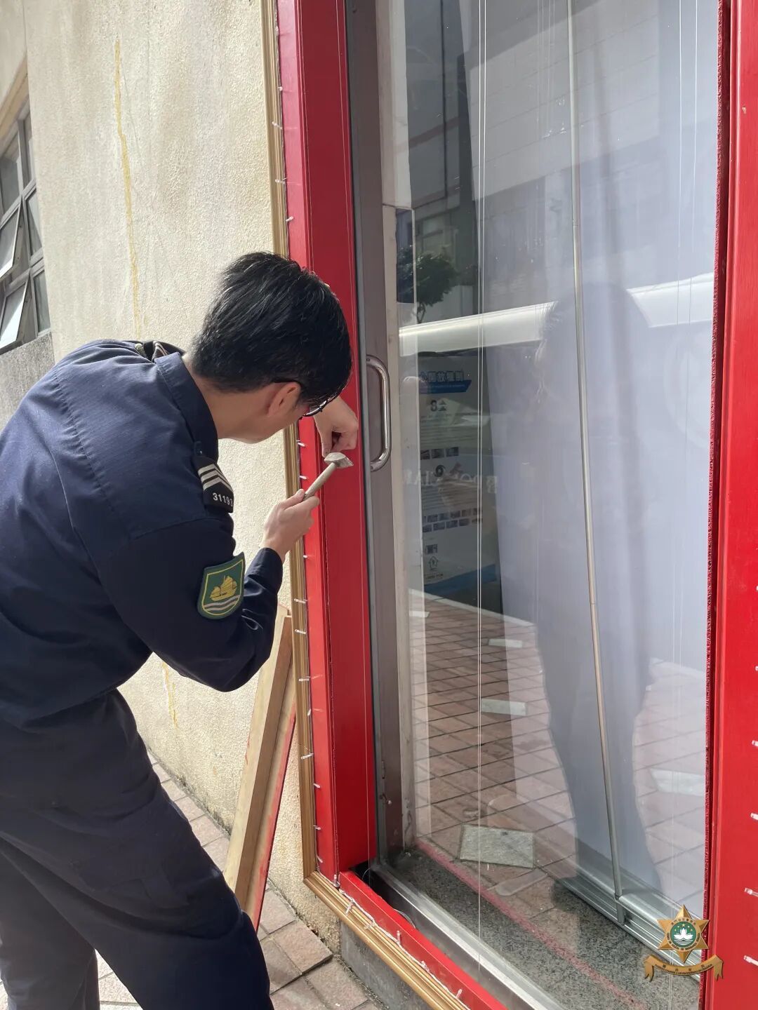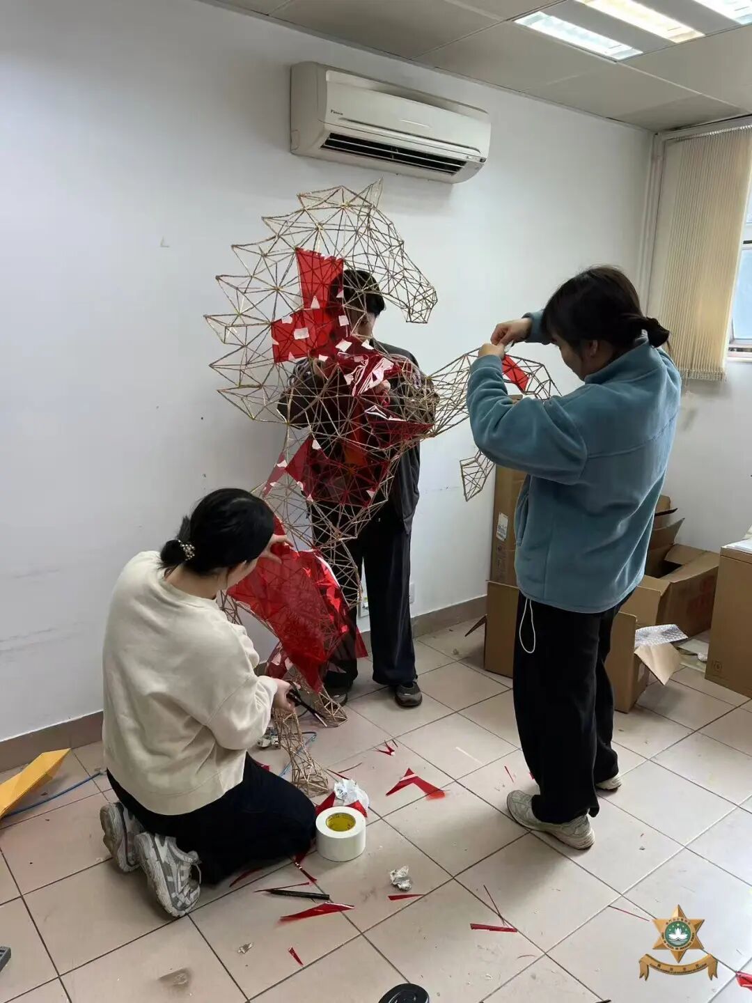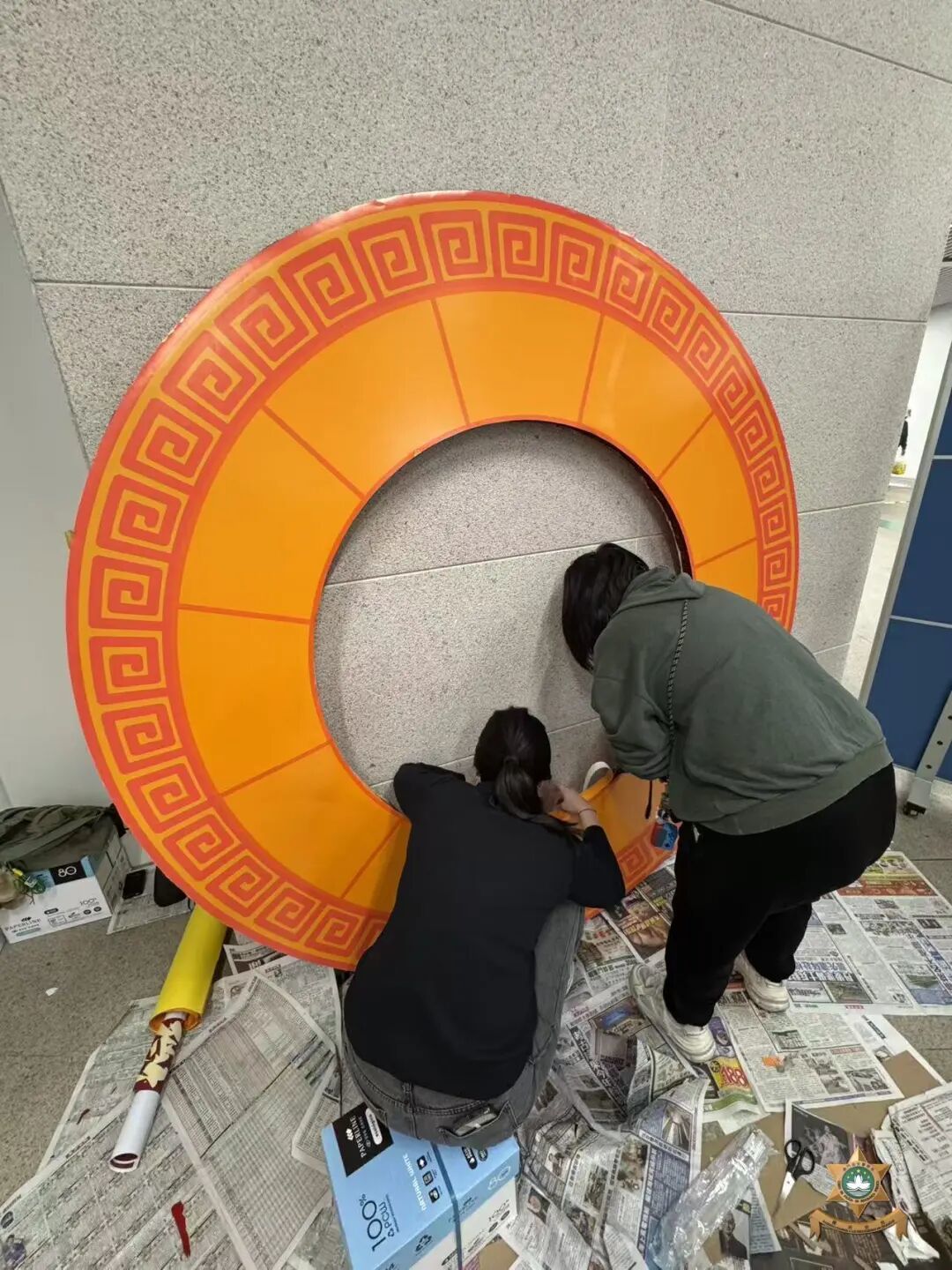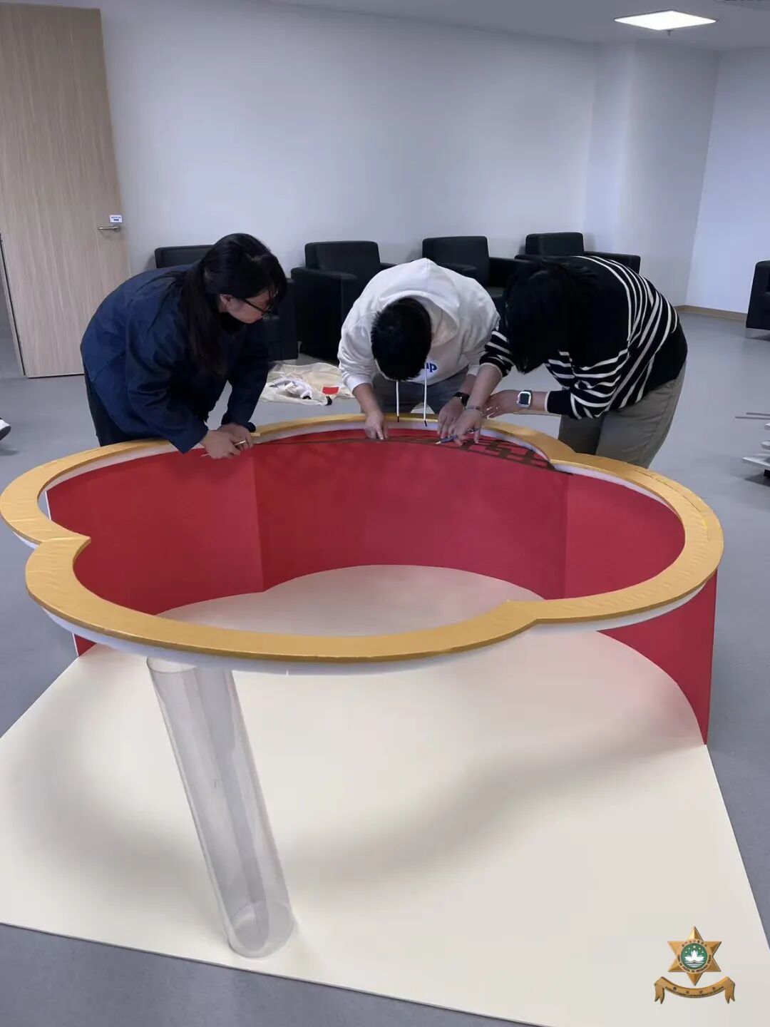 新春裝飾設計以中國世界非物質文化遺產——剪紙為主要元素。在昔日民間習俗中,人們常將象徵吉祥如意、家宅平安的剪紙張貼於門窗之上,這種美好的寓意,與本局警察宣傳的“慎門户,保平安”安全理念不謀而合。因此,我們以中國傳統美學為表達形式,傳遞澳門警察廉潔高效的精神內涵。設計過程中,我們在注重作品設計感的同時,亦合理選用環保物料,充分利用資源、發揮創意巧思,最終在團隊成員的用心製作下順利完成作品。