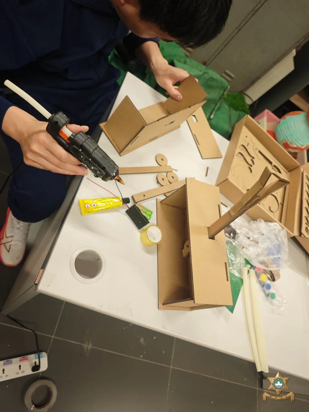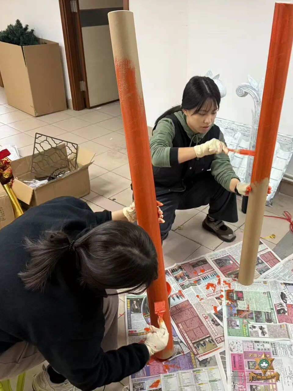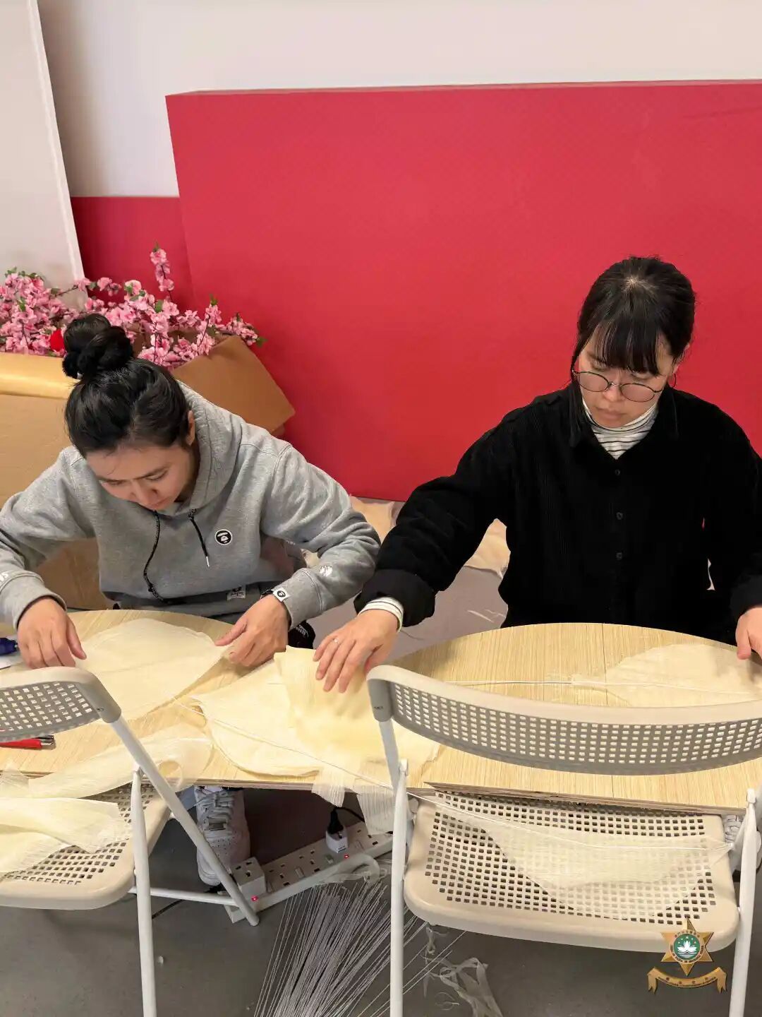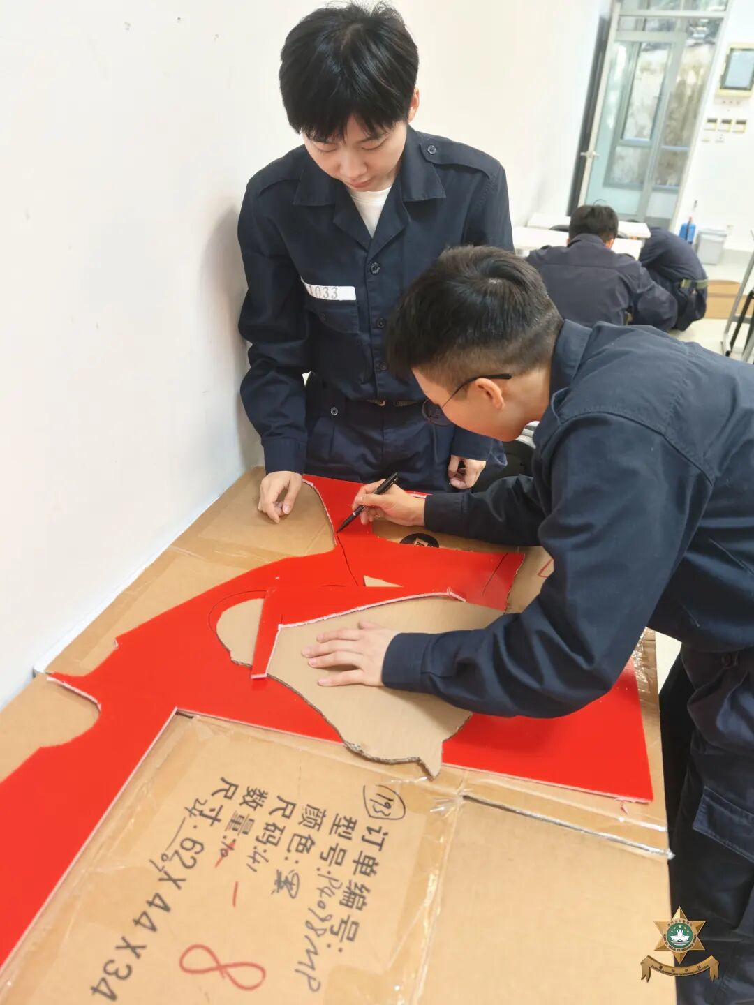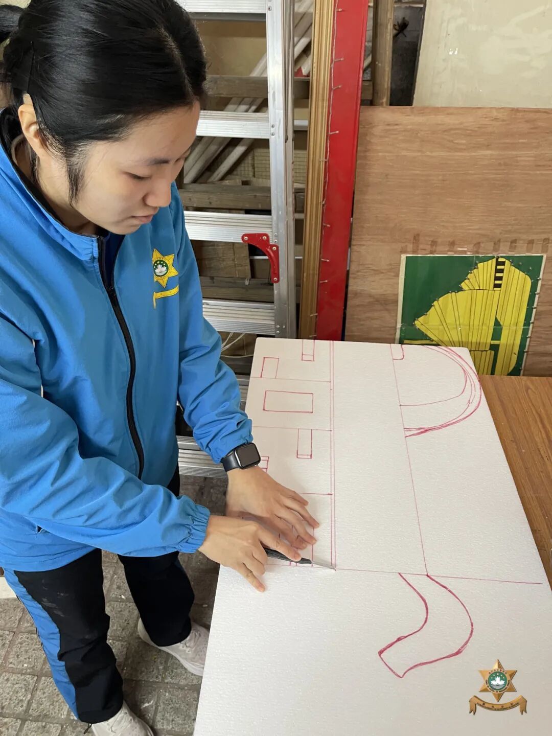新春裝飾設計以中國世界非物質文化遺產——剪紙為主要元素。在昔日民間習俗中,人們常將象徵吉祥如意、家宅平安的剪紙張貼於門窗之上,這種美好的寓意,與本局警察宣傳的“慎門户,保平安”安全理念不謀而合。因此,我們以中國傳統美學為表達形式,傳遞澳門警察廉潔高效的精神內涵。設計過程中,我們在注重作品設計感的同時,亦合理選用環保物料,充分利用資源、發揮創意巧思,最終在團隊成員的用心製作下順利完成作品。