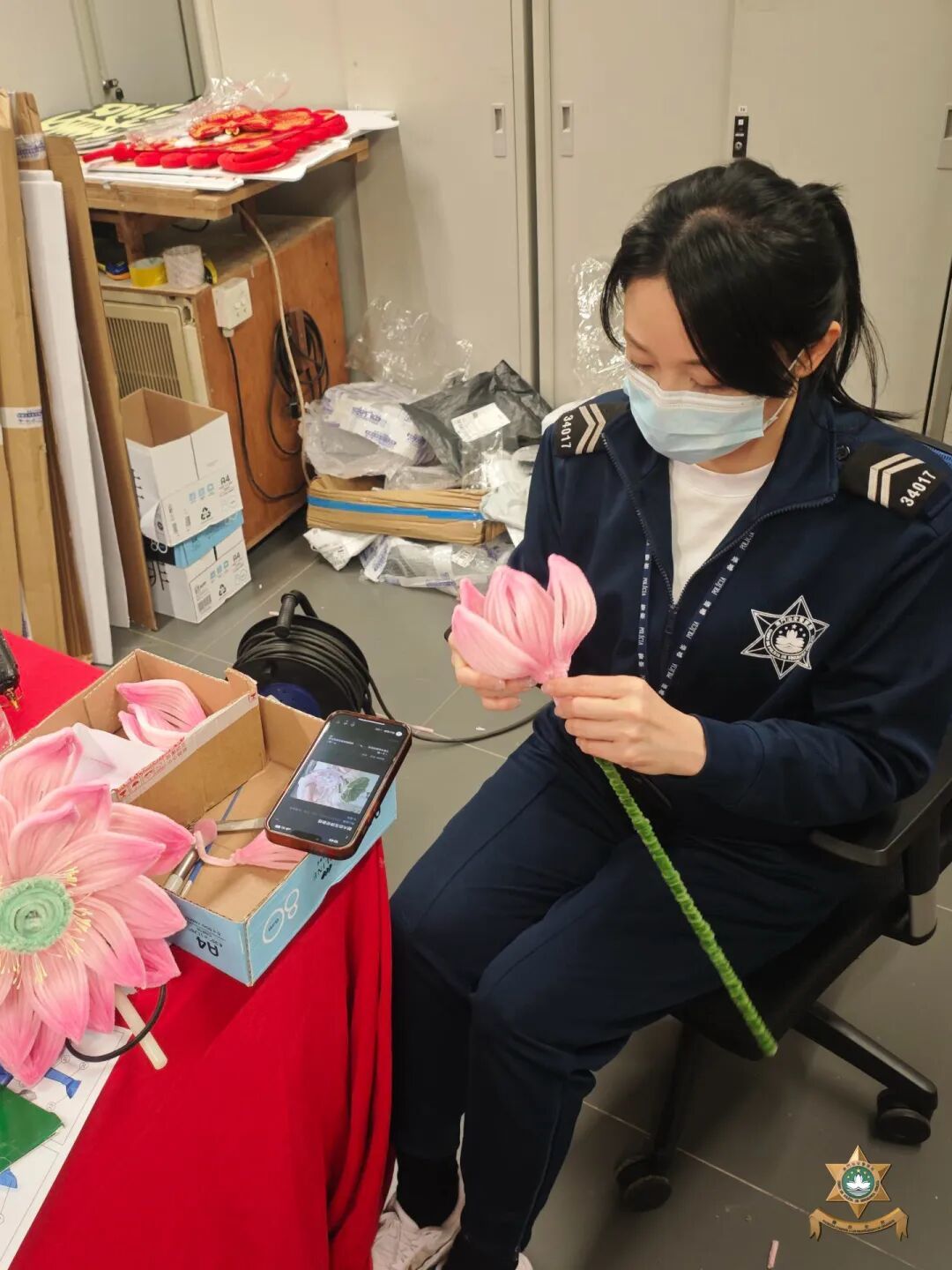 本作品以蓮花為設計主軸,蓮花既作為新年吉祥花卉,寓意花開富貴、如意吉祥,亦象徵純淨、團結與守護。作為澳門的區花,蓮花更承載著城市精神與深厚文化意涵,巧妙呼應警隊新一年“蓮結一心,共護城安”的核心理念。