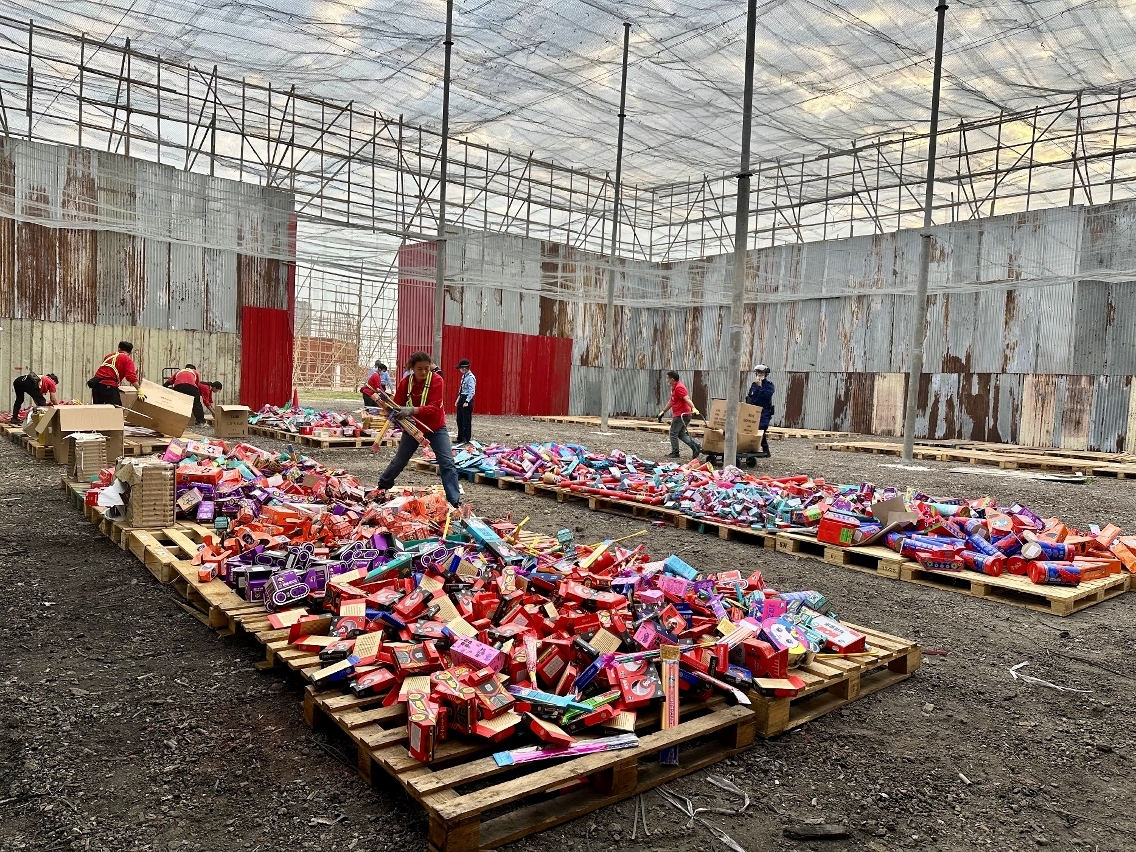 燃放區剩餘爆竹煙花及火箭已分批完成銷毀。