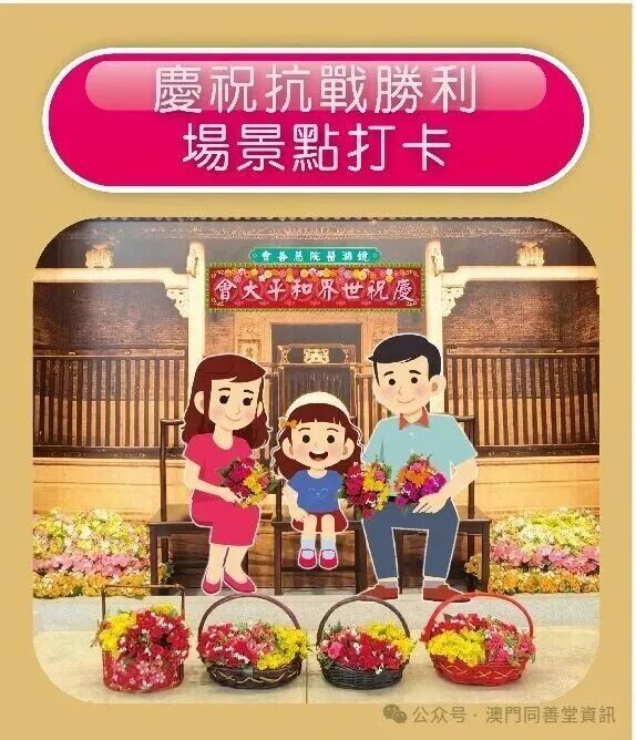 在紀念館內原鏡湖醫院古建築大門處,復原“1945年9月3日鏡湖醫院慈善會慶祝抗戰勝利大會”的歷史場景,設置沉浸式拍照打卡點。大家可在此“穿越”到那個歡慶勝利、祈願和平的時刻。