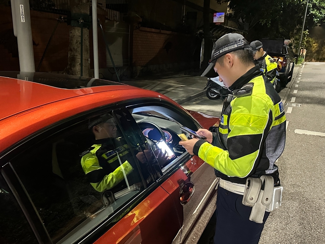 查車行動方面,共截查33輛車輛,合共查獲1宗醉酒駕駛以及檢控3宗違例(1宗沒有佩戴安全帶、1宗沒有使用行車燈及1宗沒有保險)。