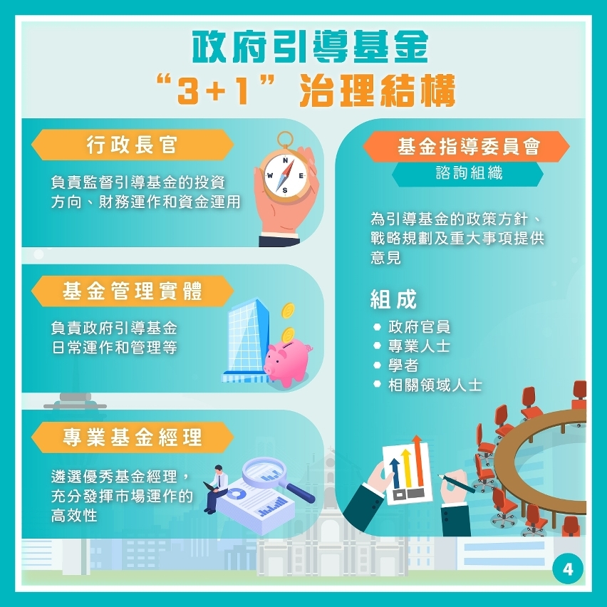 經濟財政司司長辦公室顧問譚致寧就基金的整體情況作介紹時表示,基金將由行政長官監督,並設管理實體專門負責基金日常管理,以市場化運作嚴謹遴選優質基金經理。同時,將設立由政府官員、專業人士、學者及相關領域代表組成的基金指導委員會,為基金政策方向、戰略規劃及重大事項提供意見。