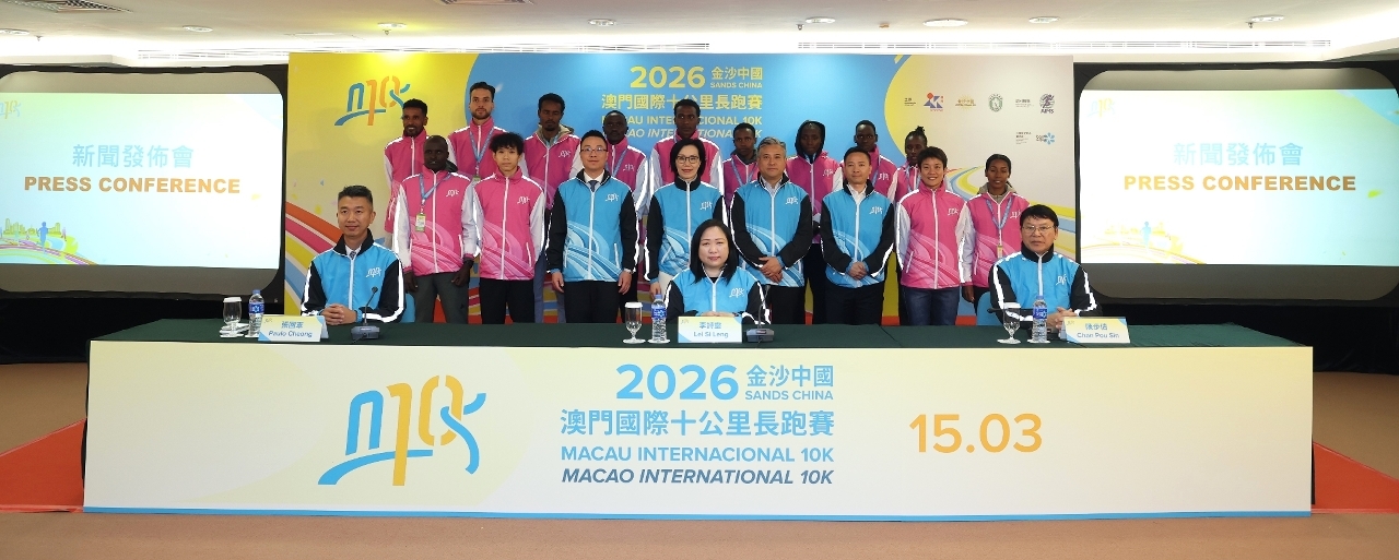 由體育局、金沙中國有限公司及澳門田徑總會舉辦的「2026金沙中國澳門國際十公里長跑賽」將於本年3月15日舉行。賽事組委會今天(13日)舉行賽前新聞發佈會,介紹賽事情況及相關資訊,並安排一眾特邀運動員與傳媒會面。