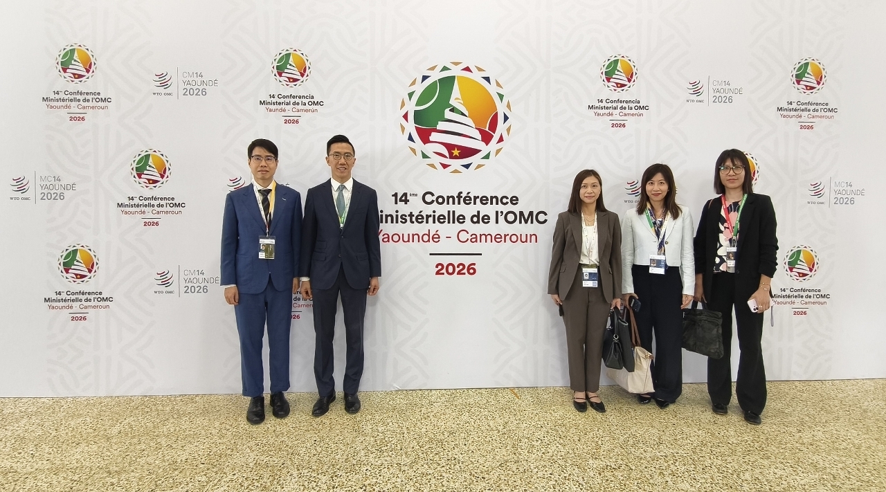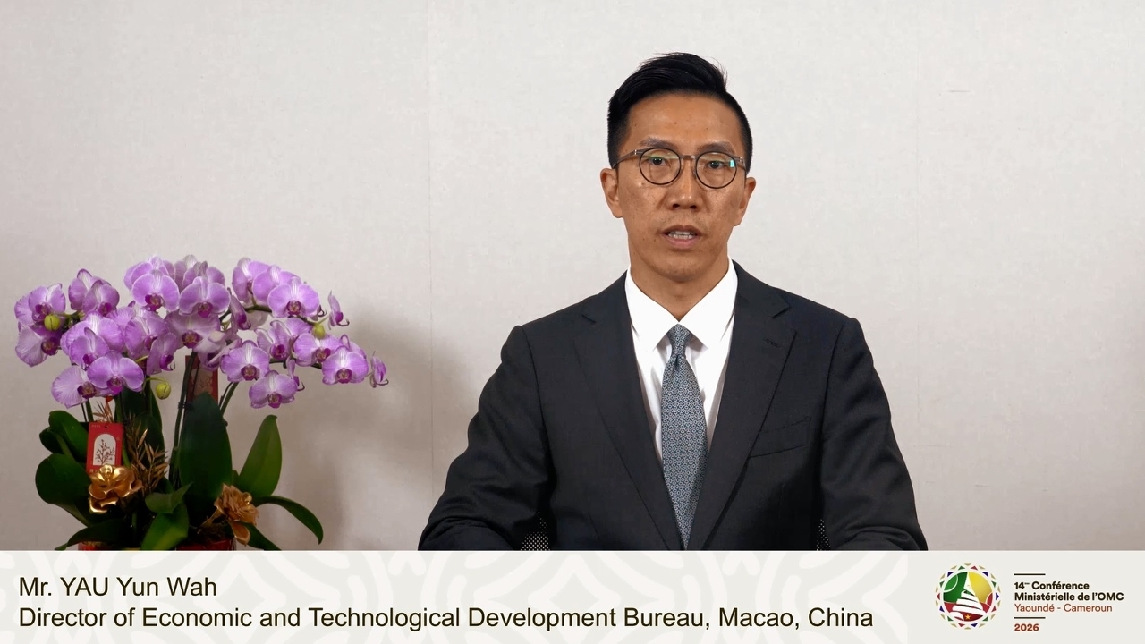 世界貿易組織(下簡“世貿組織”)第十四屆部長級會議於3月26日至29日在喀麥隆首都雅温得舉行。中國澳門以世貿組織成員身份出席會議,代表團由經濟及科技發展局局長邱潤華率領,由澳門駐世界貿易組織經濟貿易辦事處和經濟及科技發展局代表隨團出席。會議期間,中國澳門代表團就多邊貿易體制的未來方向與其他成員交換意見,積極參與世貿組織各項議題討論與相關工作。