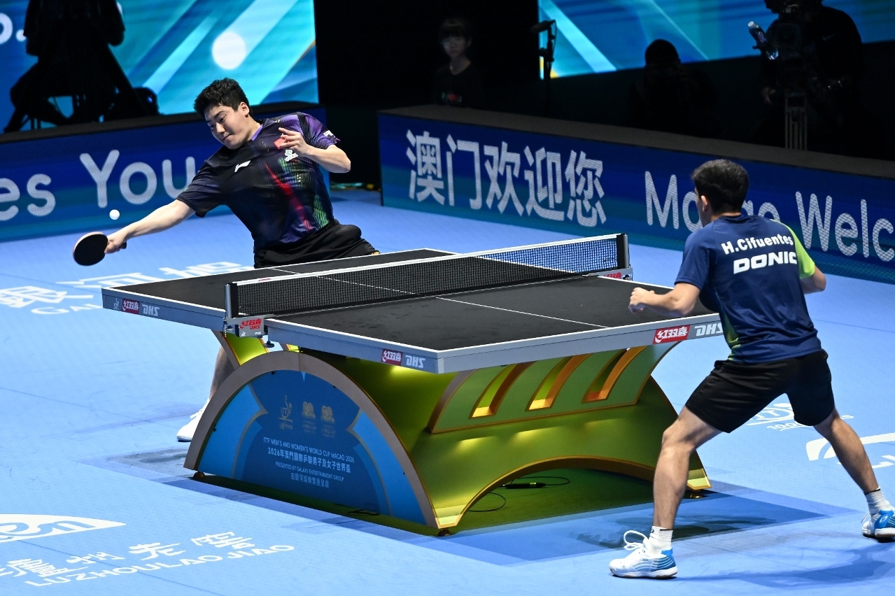 男子世界盃方面,世界第一的中國選手王楚欽以局數3比0(11比8、11比7、11比1)輕鬆擊敗羅馬尼亞愛德華・約內斯庫;而世界排名第二的瑞典特魯斯・莫雷加德以局數3比1(12比10、5比11、11比3、11比6)戰勝韓國樸康賢。此外,衞冕冠軍的巴西雨果・卡爾德拉諾以局數3比0(11比4、11比5、11比2)力壓捷克盧博米爾・揚察裏克。至於中國選手梁靖崑出師不利,苦戰五局後以局數2比3(11比5、7比11、8比11、11比4、8比11)不敵阿根廷選手奧拉西奧・西福恩特斯,需於明天戰勝德國的迪米特里・奧恰洛夫才有機會晉身淘汰賽。