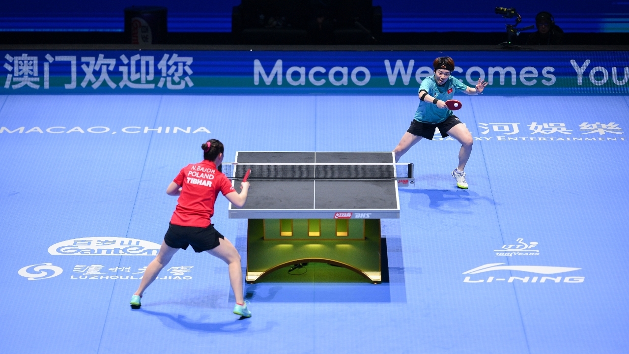 女子世界盃,中國香港杜凱琹以局數3比2(10比12、11比8、11比5、6比11、11比6)險勝波蘭的娜塔莉亞・巴約;中國覃予萱則因對手德國安妮特・考夫蔓受傷退賽而自動獲勝。