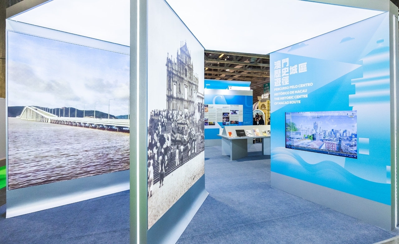 為深入對接國家“十五五”規劃部署、做好做實澳門“三五規劃”,將澳門打造成“國家高水平對外開放橋頭堡”和“中西文明交流互鑒的重要窗口”,建設更開放、包容,更有魅力的文化澳門,文化局特設“澳門館”參展第十四屆澳門國際旅遊(產業)博覽會。“澳門館”面積約144平方米,館內設有觸屏介紹“澳門歷史城區遊徑”,推廣澳門世遺的突出普世價值;現場並陳設文化局出版物、具本地世遺與非遺元素的文創產品等,宣傳澳門獨特的文化風貌與城市特色;觀眾更可利用“老澳門”互動裝置,以老澳門風景做背景,即場拍照合成相片,領略澳門的社會變遷。