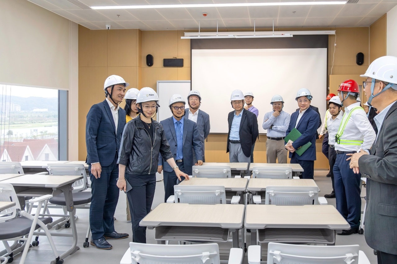 柯嵐司長一行先抵達位於合作區的大學城第一期項目設施進行考察。有關項目建築面積約6萬5千平方米,改造裝修工程現正進行,澳門大學、澳門理工大學、澳門旅遊大學預計於2026年8至9月期間入駐,開展研究生教學活動。