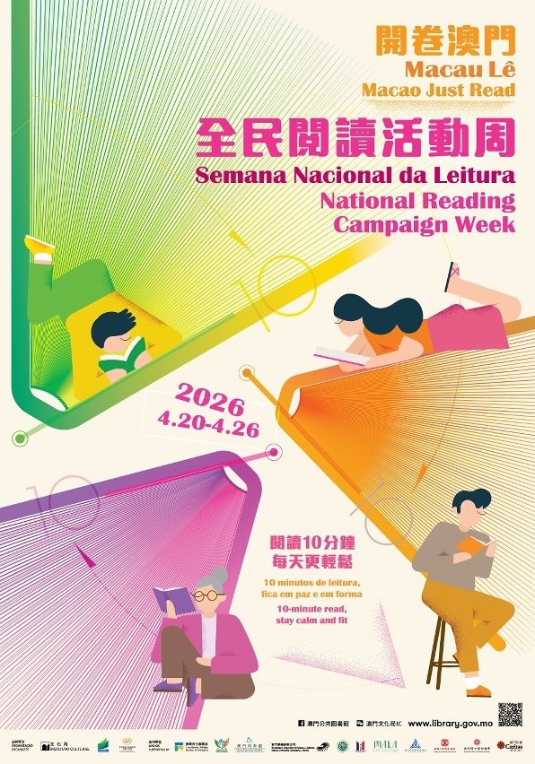 更多“全民閲讀活動周”活動詳情,可瀏覽文化局公共圖書館網站(www.library.gov.mo)、Facebook專頁“澳門公共圖書館”、“我家圖書館”流動應用程式,或“開卷澳門•2026全民閲讀活動周”專題網頁。查詢可於辦公時間致電文化局8598 6668(餘先生)、8598 6666(林先生)或澳門文化界聯合總會6560 6600(陳小姐)。